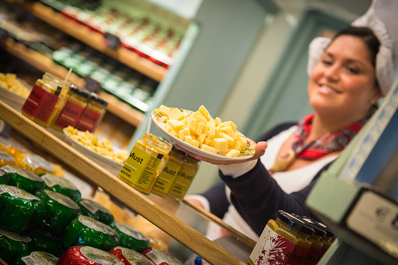 Nachdem Sie unseren Hof erreicht haben, sehen Sie eine Vorführung über die Herstellung unseres Käses. Die Käseherstellung ist auf der Zaanse Schans eine alt-holländische Zunft, genauso, wie die Holzbearbeitung, Holzschuhschnitzerei, Zinngießerei und die Likörbrennerei. Das Käsehandwerk wird Ihnen auf dem Hof Catharina Hoeve demonstriert. Auf dem Hof erklären Ihnen unsere in Kleidertracht gehüllten Mitarbeiter alles Wissenswerte über den Käse von Henri Willig: Vom Gouda über Ziegenkäse bis hin zum Kräuterkäse. Der Eintritt ist gratis.