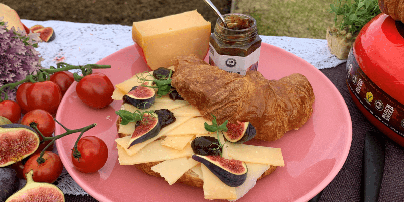Comment le préparer : Coupez les croissants chauds, étalez le dip figues–porto rouge, ajoutez des tranches de fromage de brebis et des figues fraîches entre les couches.