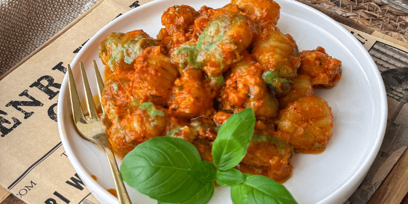 Comment le préparer : Faites cuire les gnocchis, mélangez avec la sauce pesto aux noix de cajou et le fromage Pesto Rouge râpé. Ajoutez un peu d’eau de cuisson pour une texture crémeuse.