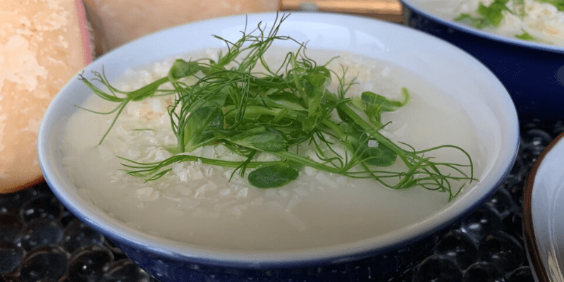 Comment le préparer : Faites revenir l’oignon et l’ail, déglacez avec le vin blanc et ajoutez le bouillon de légumes. Incorporez le fromage de brebis râpé jusqu’à ce que la soupe épaississe légèrement.